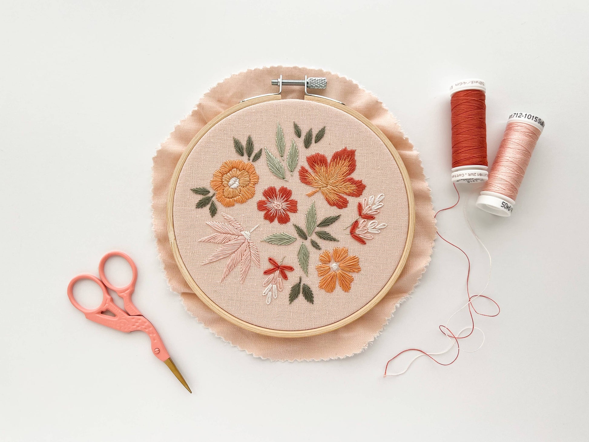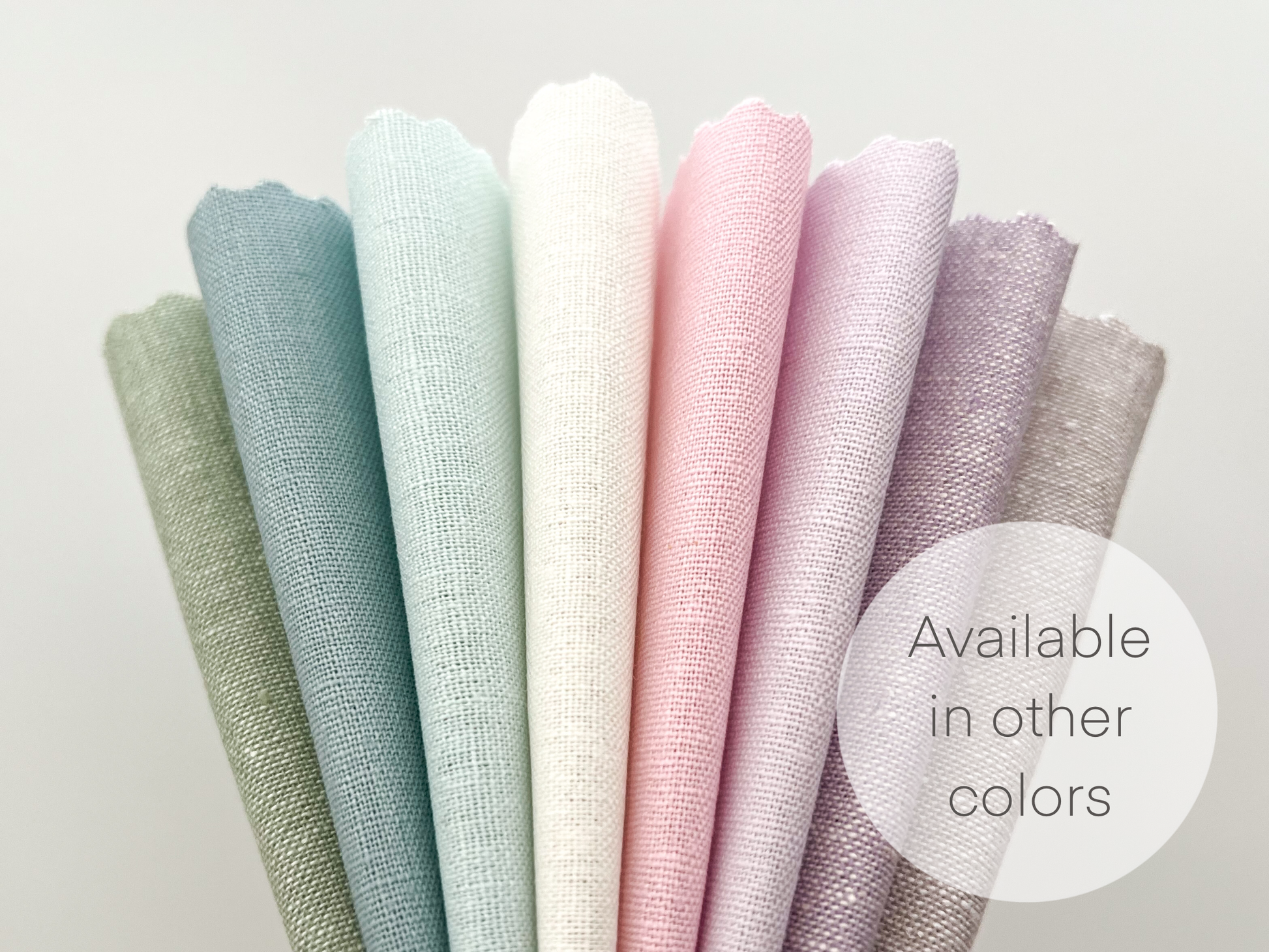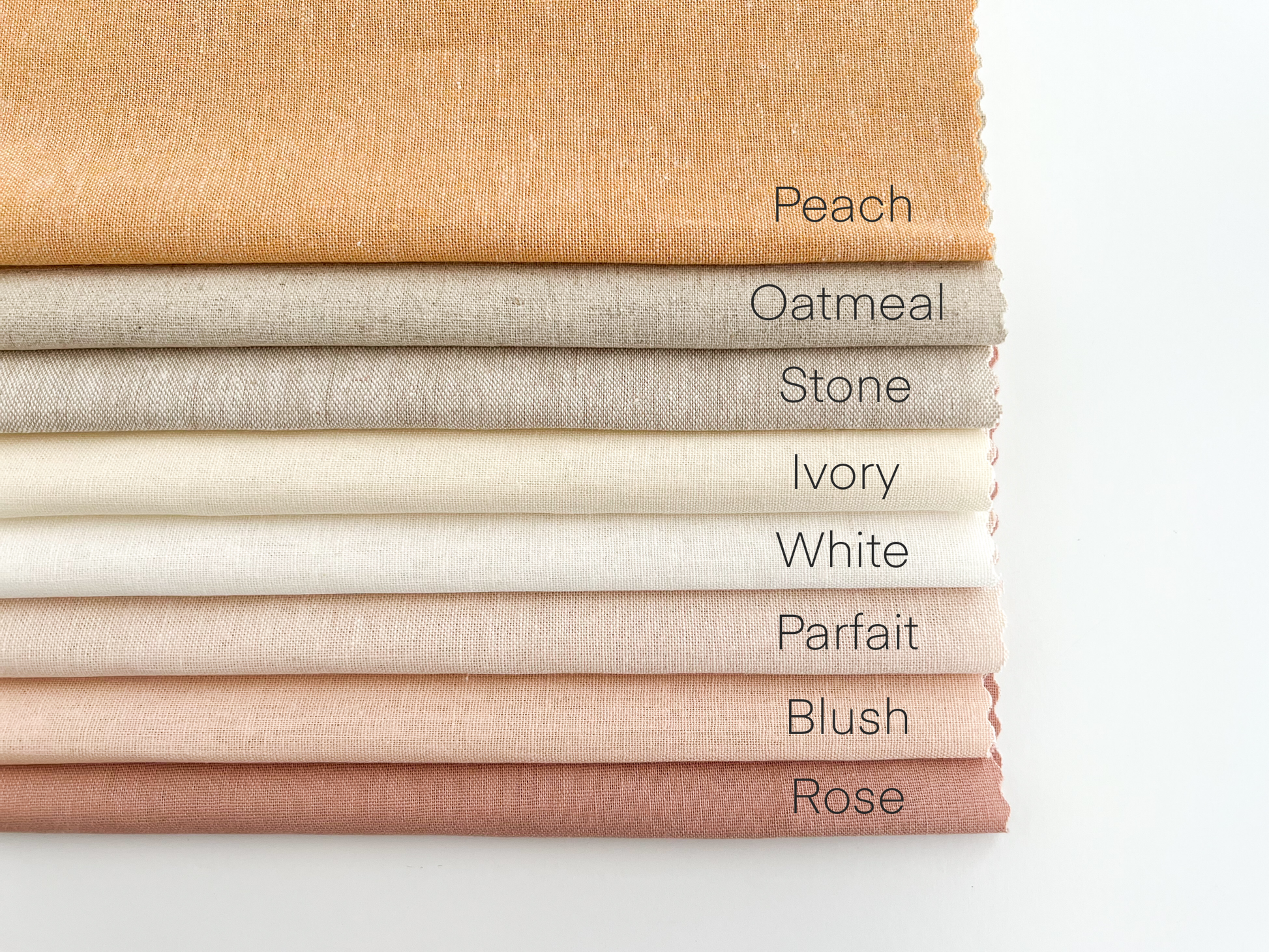 Embroidery fabric Sample Pack features 8 premium linen blend cuts in curated colors: white, oatmeal, stone, ivory, peach, rose, blush and parfait. Each fabric square measures 8” and will fit a standard 6” embroidery hoop.