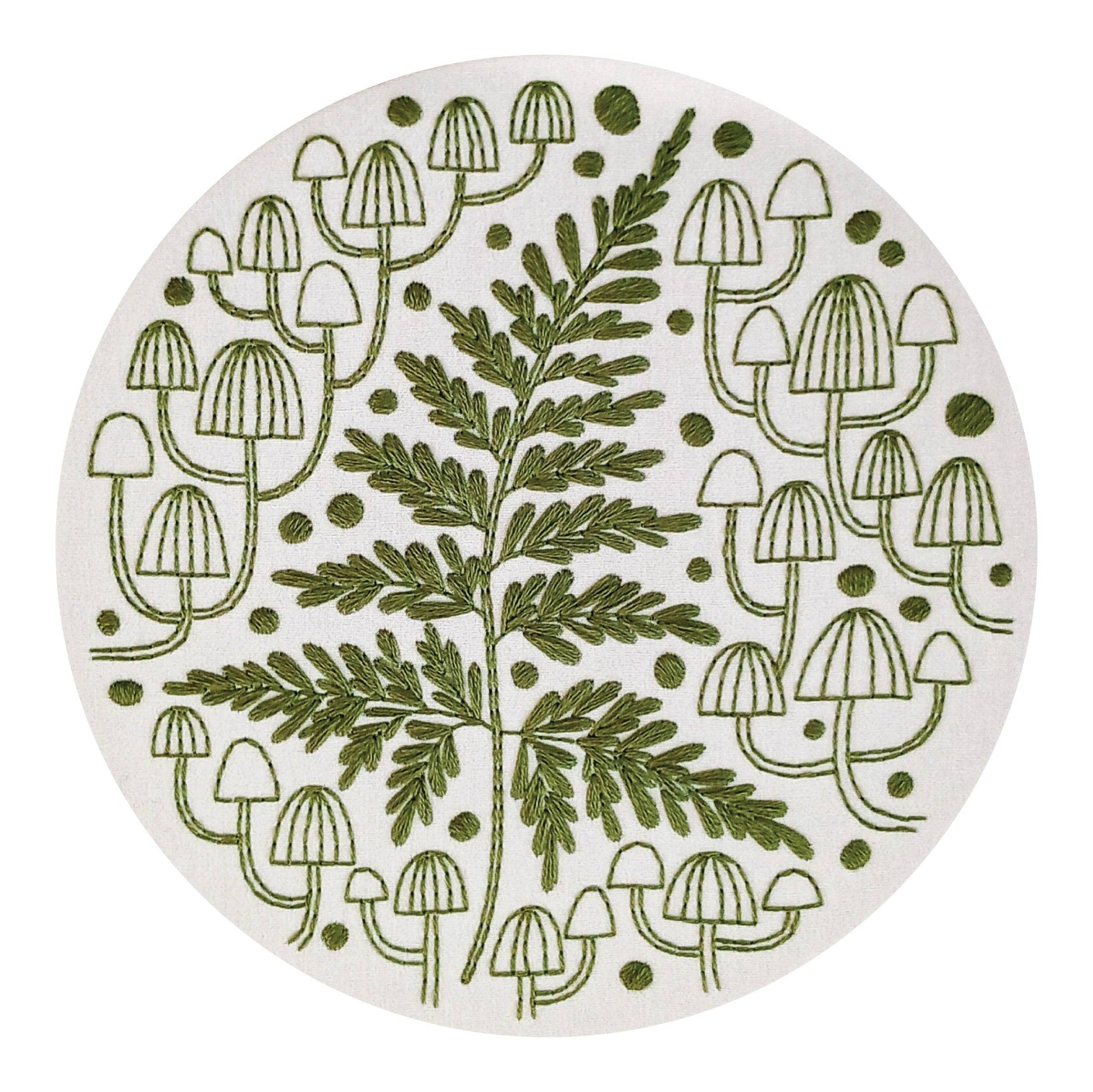using just two basic stitches, you'll love stitching this pretty fern and cheerful mushroom pals. let's get started!